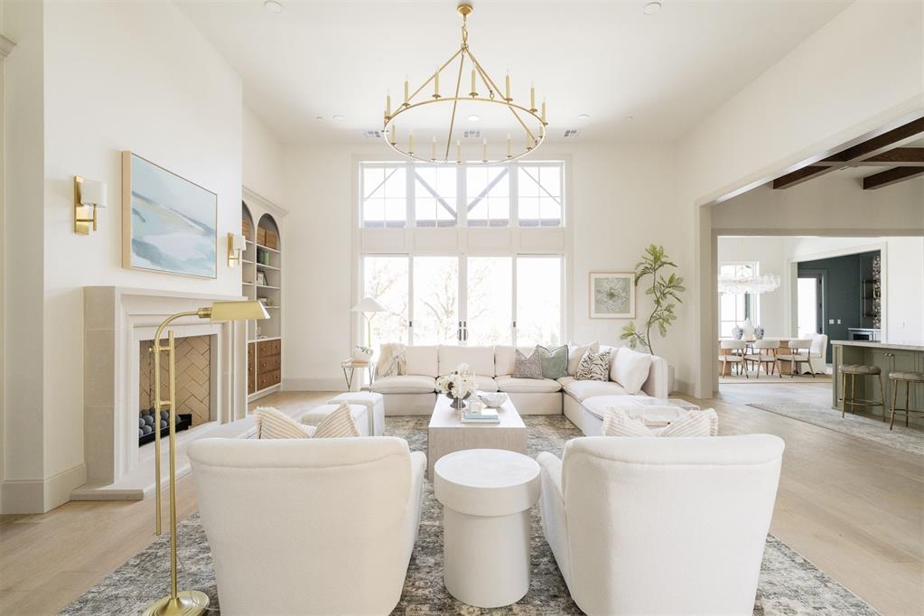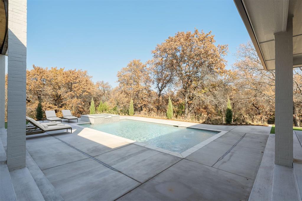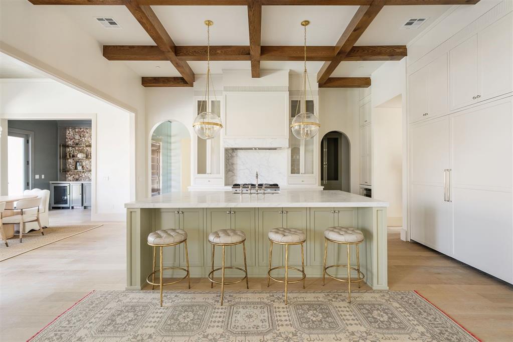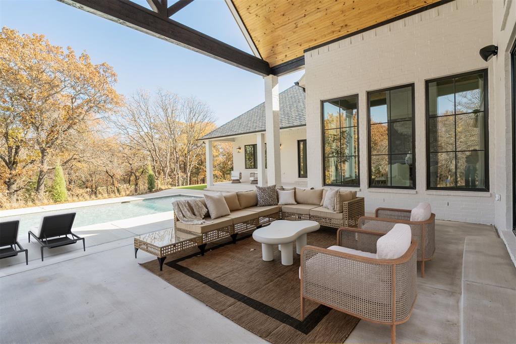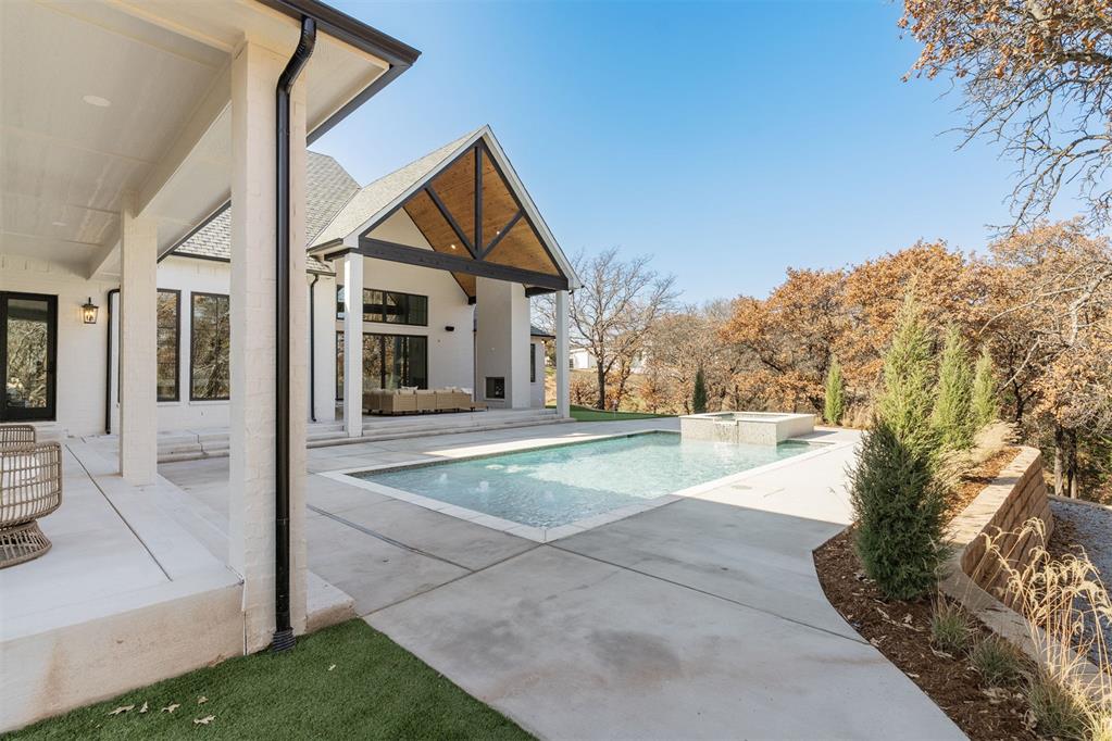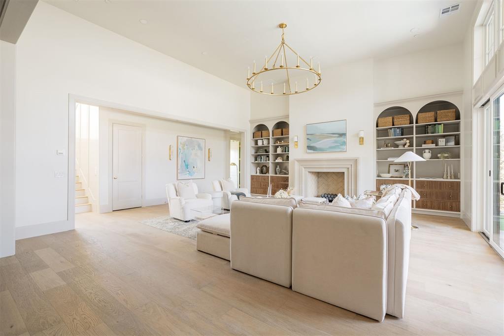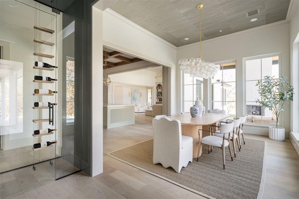 THURSDAY OPEN HOUSE, DEC 18, 11:30 to 1:30 PM. Tucked within the exclusive, gated enclave of Shoreline, just south of Lake Arcadia, this breathtaking estate blends timeless architecture with curated luxury. On an acre of land, the home offers 5 spacious bedrooms, including a private mother-in-law suite, alongside a dedicated gym, a separate study, and a large upstairs bonus room, all thoughtfully designed by the highly regarded Kirby Home Designs to accommodate both everyday living and elevated entertaining. From the moment you arrive, the home commands attention with its Belmont shingles and cast stone accents. Inside, the attention to detail continues with Visual Comfort lighting throughout and a refined palette of wood, marble, limestone, and tile flooring. The chef’s kitchen is a true showpiece, featuring a La Cornue range, panel-ready appliances, and a nugget ice machine, all seamlessly integrated into the custom cabinetry and butler’s pantry. The kitchen also includes coffered ceilings and archways that echo the home’s architectural sophistication. Nearby, a stunning glass-enclosed wine rack and a gorgeous wet bar offers a dramatic space for entertaining. The mudroom includes marble countertops and five custom drop zones. The primary suite is equally impressive, featuring his-and-hers closets that maximize both function and luxury. Plumbing fixtures throughout the home include high-end selections such as Newport Brass, Brizo, Kingston Brass, and Delta. Soaring 14-foot ceilings in the living room and 12-foot ceilings in the kitchen amplify the sense of space and light. Wall-to-wall windows in the living and dining rooms overlook a 30’ x 16’ resort-style pool, surrounded by layered landscaping, an outdoor kitchen and a covered patio with a fireplace. From the pool area, a beautiful view is seen over the remainder of the acreage. Every finish and fixture in this home was selected with precision and style making it exceptionally livable and undeniably luxurious.