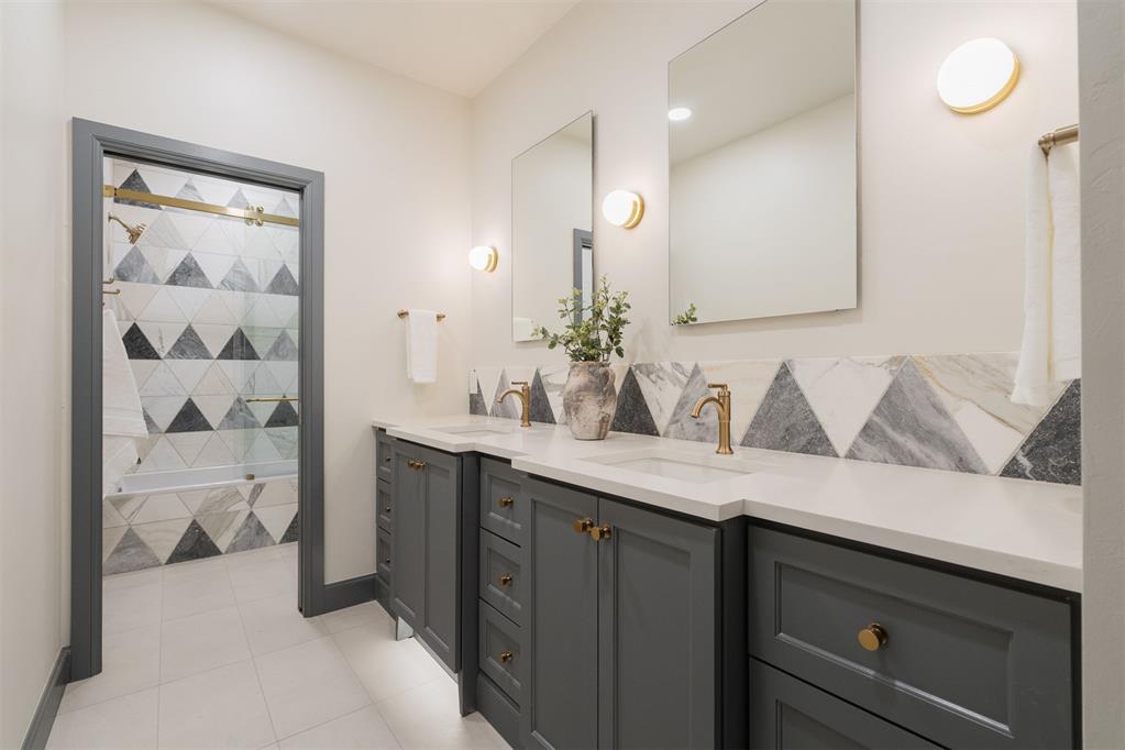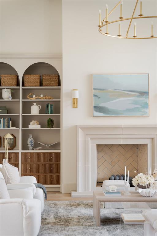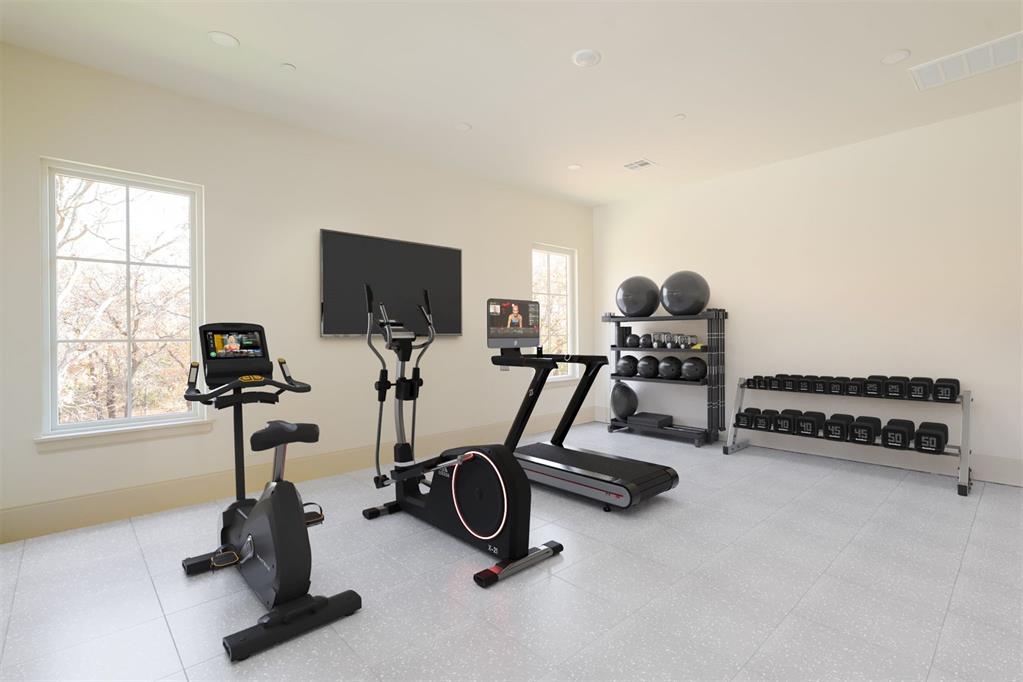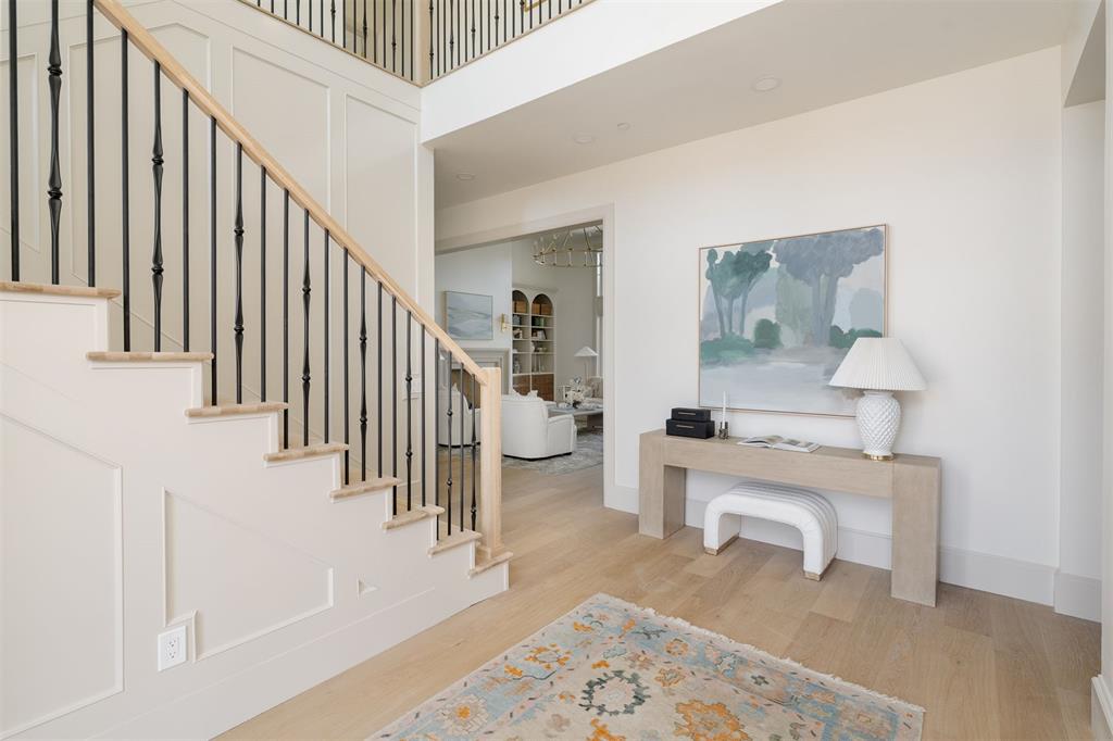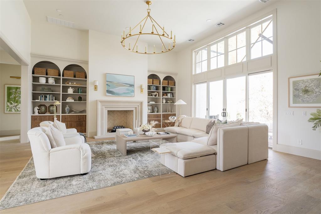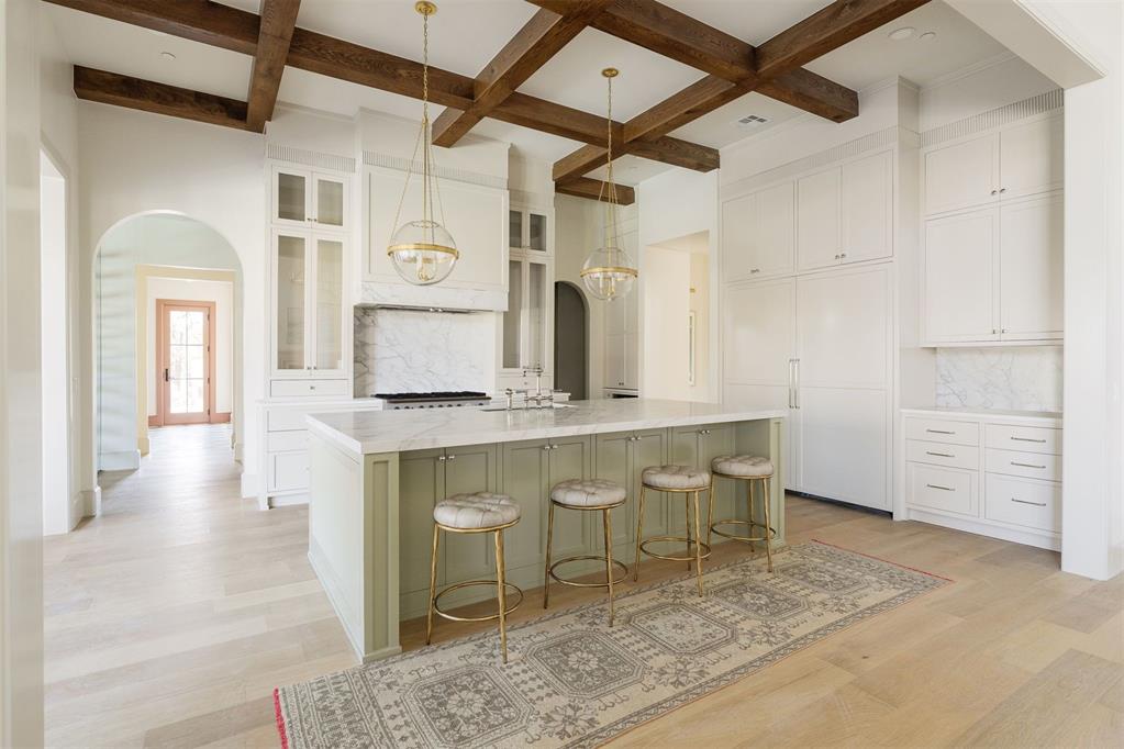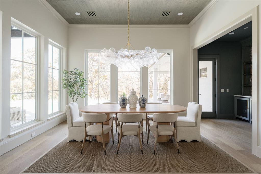 THURSDAY OPEN HOUSE, DEC 18, 11:30 to 1:30 PM. Tucked within the exclusive, gated enclave of Shoreline, just south of Lake Arcadia, this breathtaking estate blends timeless architecture with curated luxury. On an acre of land, the home offers 5 spacious bedrooms, including a private mother-in-law suite, alongside a dedicated gym, a separate study, and a large upstairs bonus room, all thoughtfully designed by the highly regarded Kirby Home Designs to accommodate both everyday living and elevated entertaining. From the moment you arrive, the home commands attention with its Belmont shingles and cast stone accents. Inside, the attention to detail continues with Visual Comfort lighting throughout and a refined palette of wood, marble, limestone, and tile flooring. The chef’s kitchen is a true showpiece, featuring a La Cornue range, panel-ready appliances, and a nugget ice machine, all seamlessly integrated into the custom cabinetry and butler’s pantry. The kitchen also includes coffered ceilings and archways that echo the home’s architectural sophistication. Nearby, a stunning glass-enclosed wine rack and a gorgeous wet bar offers a dramatic space for entertaining. The mudroom includes marble countertops and five custom drop zones. The primary suite is equally impressive, featuring his-and-hers closets that maximize both function and luxury. Plumbing fixtures throughout the home include high-end selections such as Newport Brass, Brizo, Kingston Brass, and Delta. Soaring 14-foot ceilings in the living room and 12-foot ceilings in the kitchen amplify the sense of space and light. Wall-to-wall windows in the living and dining rooms overlook a 30’ x 16’ resort-style pool, surrounded by layered landscaping, an outdoor kitchen and a covered patio with a fireplace. From the pool area, a beautiful view is seen over the remainder of the acreage. Every finish and fixture in this home was selected with precision and style making it exceptionally livable and undeniably luxurious.